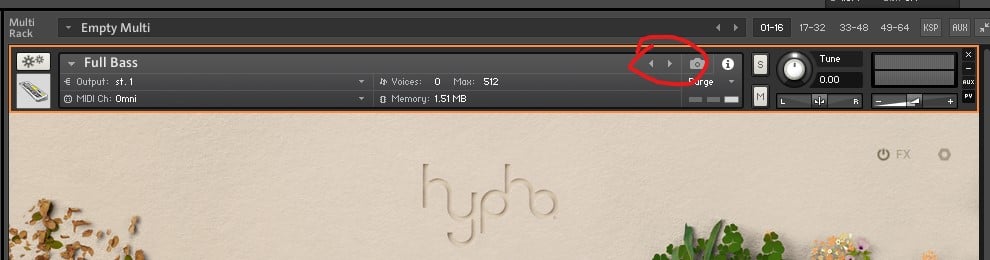 I understand I can pick instruments and their presets from the Kontakt initial library browser view but once I've loaded the instrument, how can easily change presetns from a list without having to go from the start? I can see I can cycle through presents with the lef/right arrow buttons: