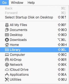 - Open a Finder window and click on Go in the top menu bar, then press down the Alt / Option key. Click the Library entry which becomes visible in the drop-down menu to access the User Library.