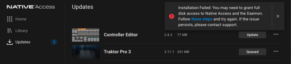I get this error when trying to update Traktor 3.5.2 to 3.11.1, they have disk permission and I still get the error (see img) SO Monterry 12.7.5