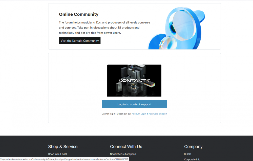 Does anyone else not have the ability to log in on the page here? When I logged in it says to "Log in to contact support" but the link takes me back to https://support.native-instruments.com/hc/en-us/