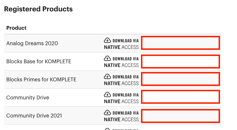 I have a number of products that i want to register through Native Acess, but without the serial numbers there is no way to do this.