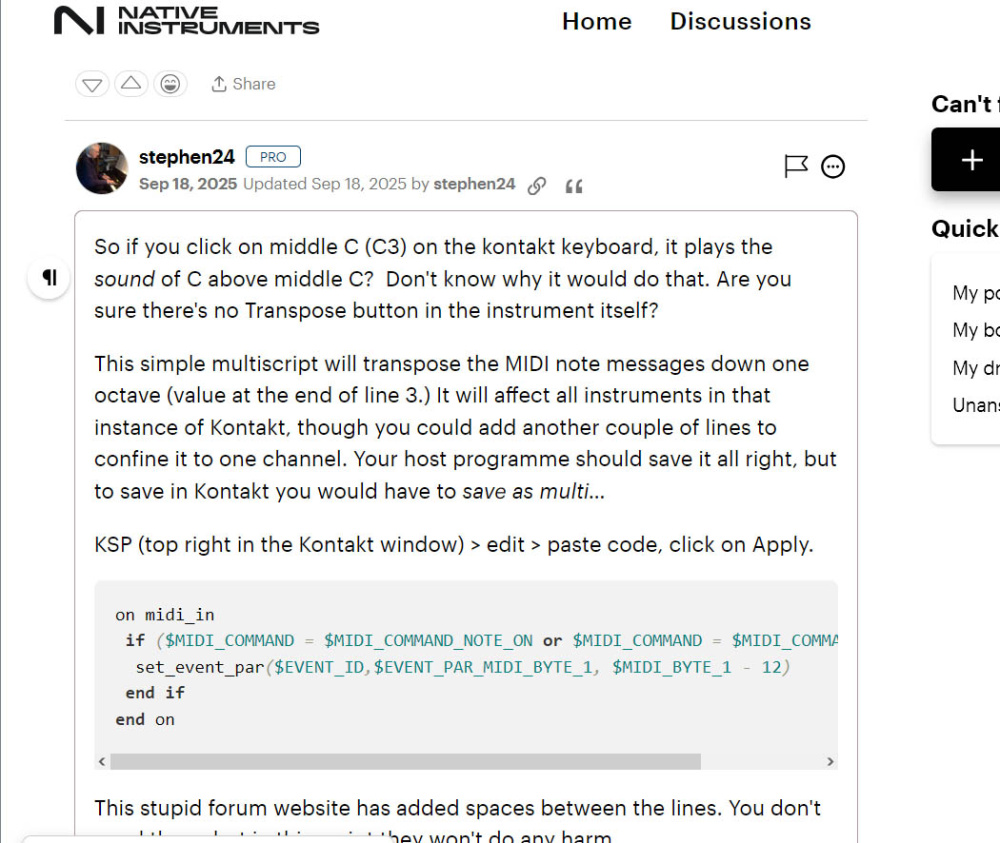I already tried to configure "MIDI transpose" in the instrument settings to -12. But then notes C to F# do not play at all, it starts at G.
