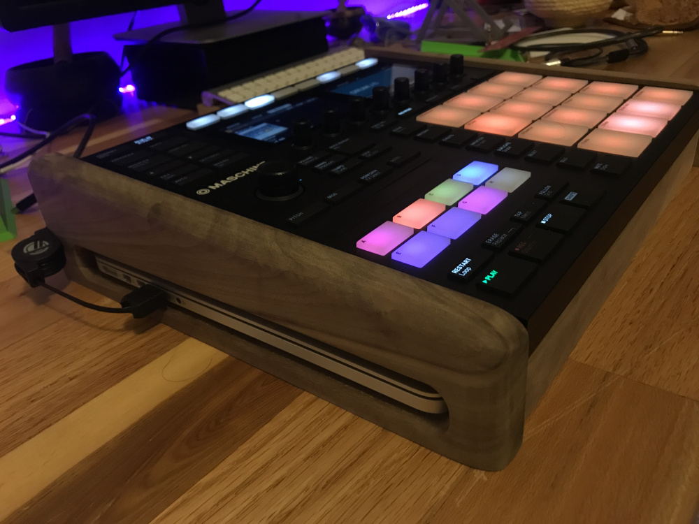 I’ve been working on a custom 3D-printed stand designed specifically for the Maschine Plus, but it also fits the Maschine Mk3. The stand is angled for a comfortable workflow, features recessed feet so the unit stays firmly in place, and includes non-slip pads on the bottom for extra stability.