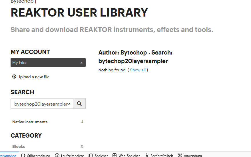 I found a workaround, use a minus instead of whitespace works. If i search for my Bytechop Layersampler the search URL looks like:https://www.native-instruments.com/en/reaktor-community/reaktor-user-library/all/all/all/785649/bytechop%20layersampler/latest/1/all/?q=bytechop%20layersampler&t=userlib