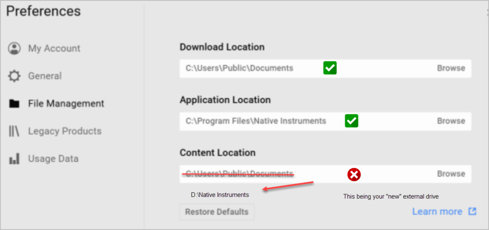 First, I started by downloading all the subscription items on Native Access 2 (those in MB and GB), but I automatically received an error message preventing me from continuing the download process: “Insufficient disk space to download and install your products...”