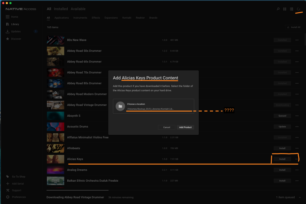 Dear Native Ins. Please help- Having commissioned a new drive for sample storage with my system, made a clone and checked Native Ins. app for storage and and updates - Kontact files are automatically going into system shared folder& re-downloading, which I do not want.