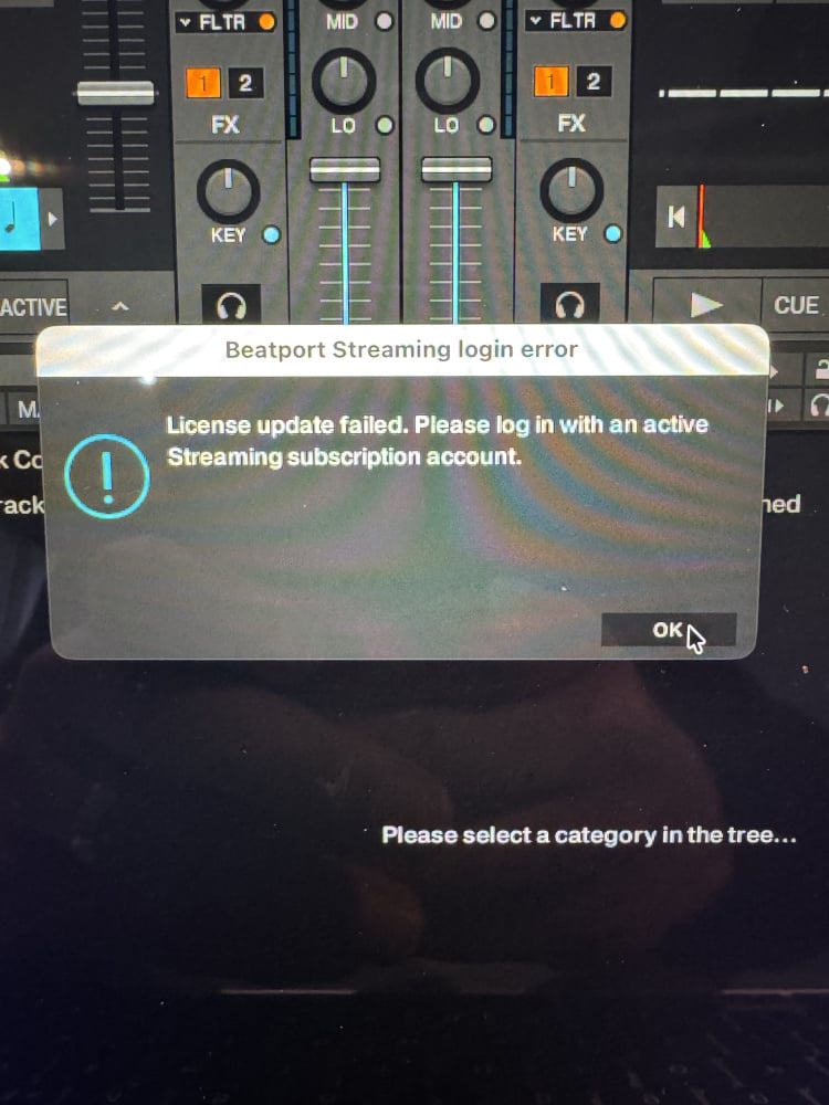 Hi. I’ve just reactivated my Beatport subscription and fired up Traktor for the first time in about 8-9 months and got this error message. I don’t seem to be able to stream track from Beatport, no matter how many times I log in. I’ve also reinstalled Traktor but that’s not made any difference.