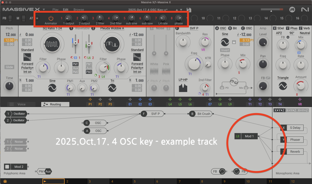 As I tried, when the player is on, the performer and other modulation sources can be out of beat, and I found out that applying Mod1 and 2 like this solved it and sits the output in its decent place, and makes mixing with drum easier.