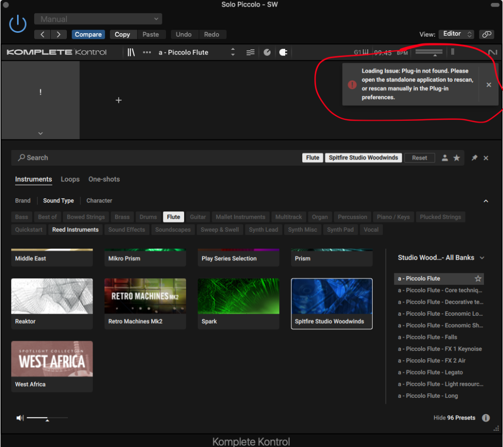 I recently switched computers to a new Mac Mini (from a MacBook pro). There were several issues in the move with my KK S61 integrating with logic but they have all been fixed. One issue remains: when I try to load instances of Komplete Kontrol in Logic I get an error message (screen shot attached). I have done extensive trouble-shooting following advice from NI forums past and with help from ChatGPT. Rescanned, rebooted, uninstalled, reinstalled. Can't find anything else to try so turning here for help.