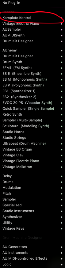 - Komplete Kontrol doesn't show up anywhere when creating a new software instrument track (pic 2)