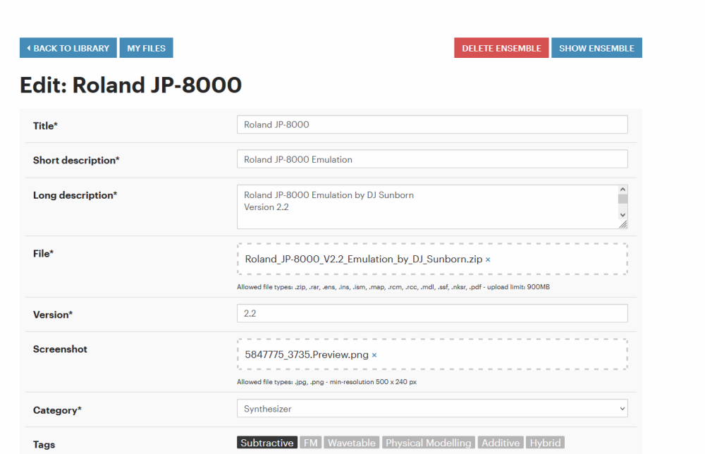 now I see only an edit button where i can edit the text but I can't find where I upload the new ensemble.