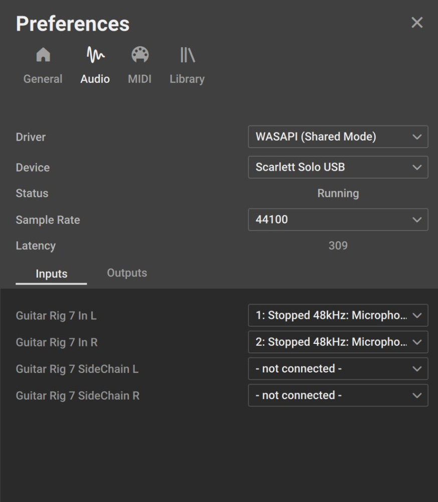 But today I have started it, and it just will not work. In the settings, in the input section, it now says 'Microphone stopped 48kHz' both L & R. It never said that before. I have tried every combination of options but nothing. I have even reinstalled GR7 using the 'reinstall' button in Kontakt.