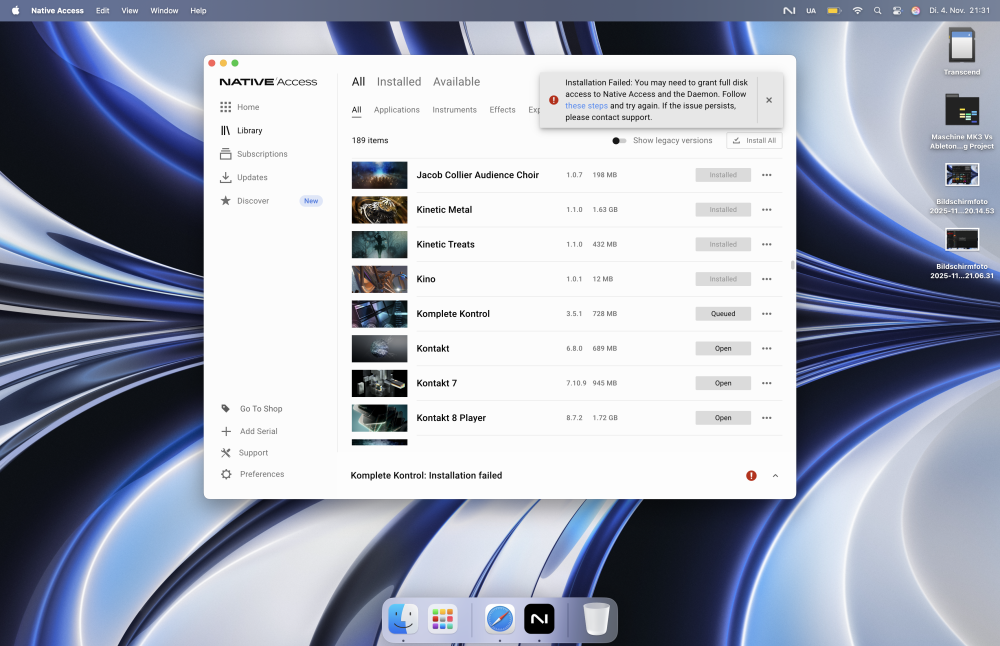 I am not entirely sure if the Komplete Konrol installation problem has anything to do with the in Komplete Kontrol complaint problems.
