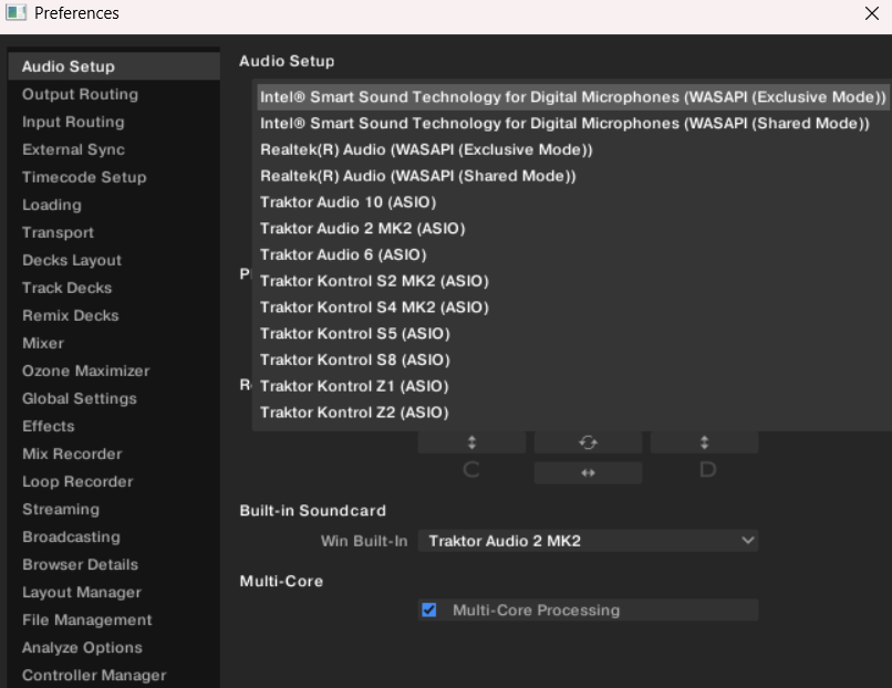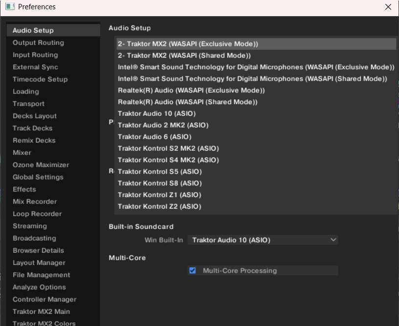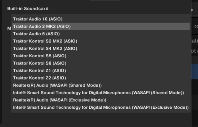 In the audio setup I have set this to "Traktor Audio 2 MK2 (ASIO)" and have Built-In Soundcard set to "Traktor Audio 2 MK2" but I just get a message saying "Please connect and select an audio device"
