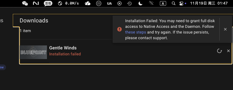 I have been trying to install the 15 Collector's Edition for a week now, but it still hasn't been fully installed successfully. First, there was a download error, and then an installation prompt showed a permission error. I have enabled full disk access permissions for all programs on my computer, yet this issue remains unresolved. Has anyone encountered this problem before? Could someone please help me with this?