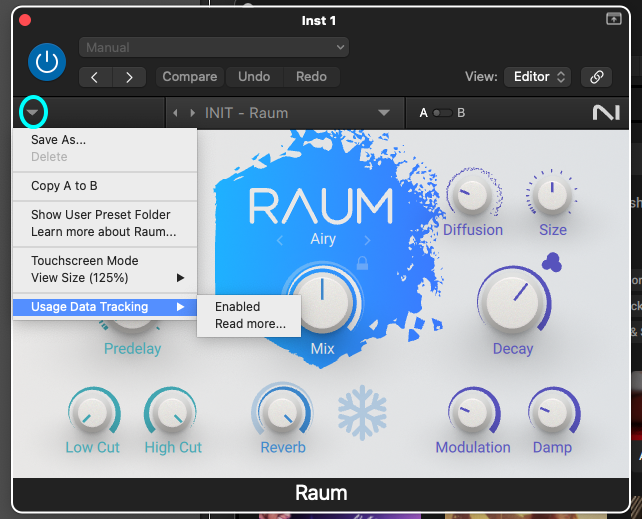 This is a recent development (possibly since installing the newest NI Access?). When loading the Raum plugin on a Logic track, it takes AN AGE to load. Then, opening a project that uses the Raum plugin hangs on loading. It takes a good 1-2 minutes for the project to finally load.