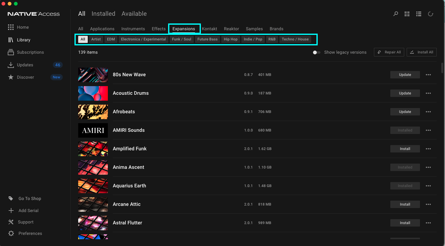 Hey guys, random question maybe. I love my expansions however it can be hard to figure out which genres they are, in terms of browsing. Anyone have a way around this? I've been checking the NI website and searching for genres in the descriptions but I would love if there was a easier way to find a minimal tech house expansion or a carribean one for example, some of them have obvious names but more often than not, I'm having to search to see which one is techno or house etc. Just asking in case there is an easier way! Also browsing by genre in the browser would be a sick addition if possible/reasonable. helps me find samples faster. For not Ijust browse until Ifind the right genre then go fromthere.