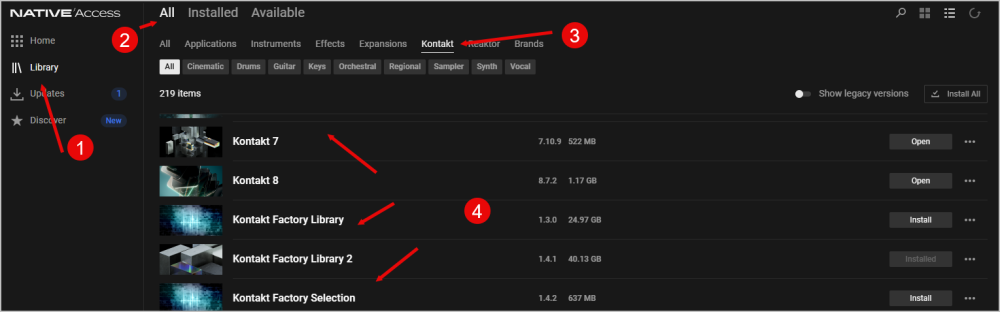 I wasn't able to use my desktop computer for a few months. When I finally started it up Windows wouldn't load. I had to do a clean install of Windows so the entire drive got wiped. Now when I open Native Access Kontact 7 doesn't show up. Kontakt Player 8 and all the libraries appear though. Any advice?