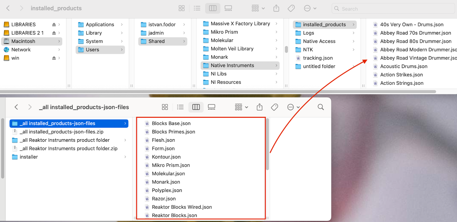 Macintosh HD > Users > Shared > Native Instruments > installed_products